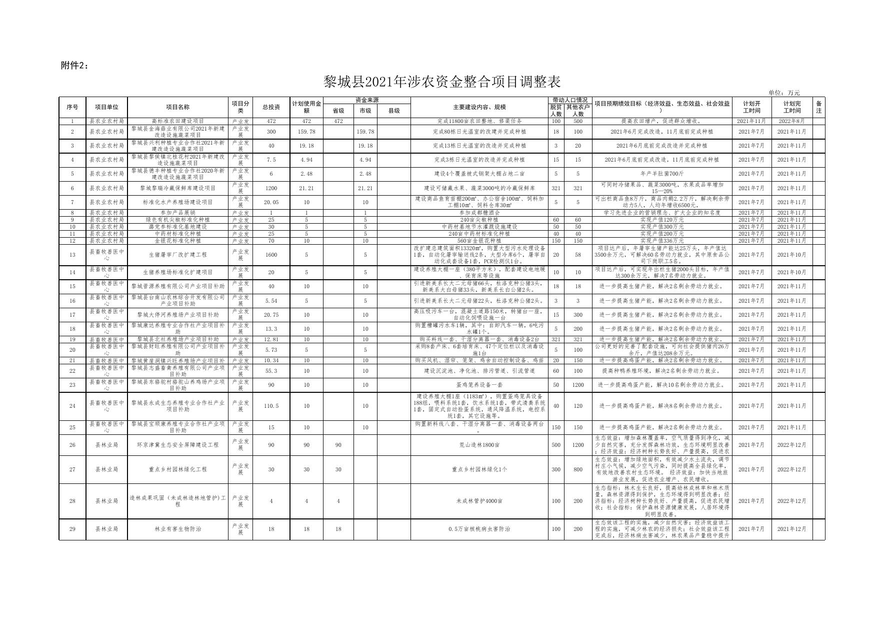 黎城县2021年涉农资金整合项目实施计划表.xlsx