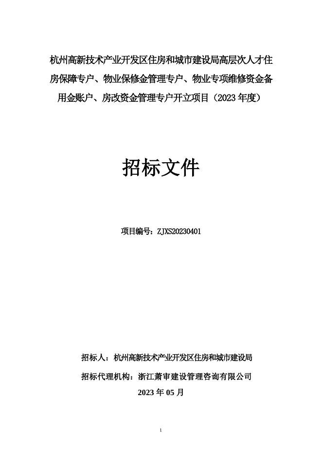 杭州高新技术产业开发区住房和城市建设局高层次人才住房保障专户、物业保修金管理专户、物业专项维修资金备用金账户、房改资金管理专户开立项目(2023年度)招标文件.doc
