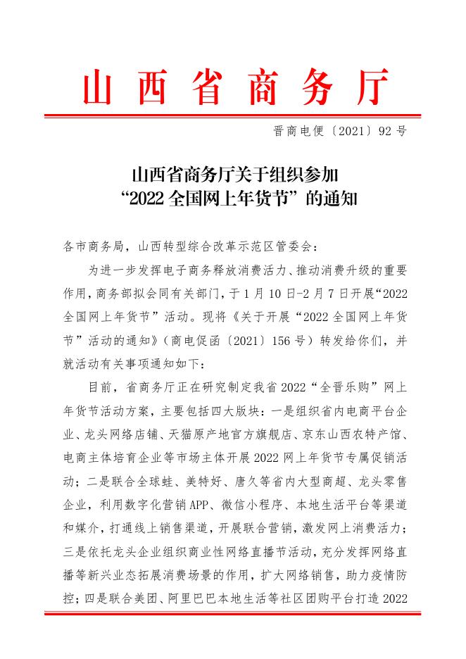 山西省商务厅关于组织参加“2022网上年货节”的通知.pdf