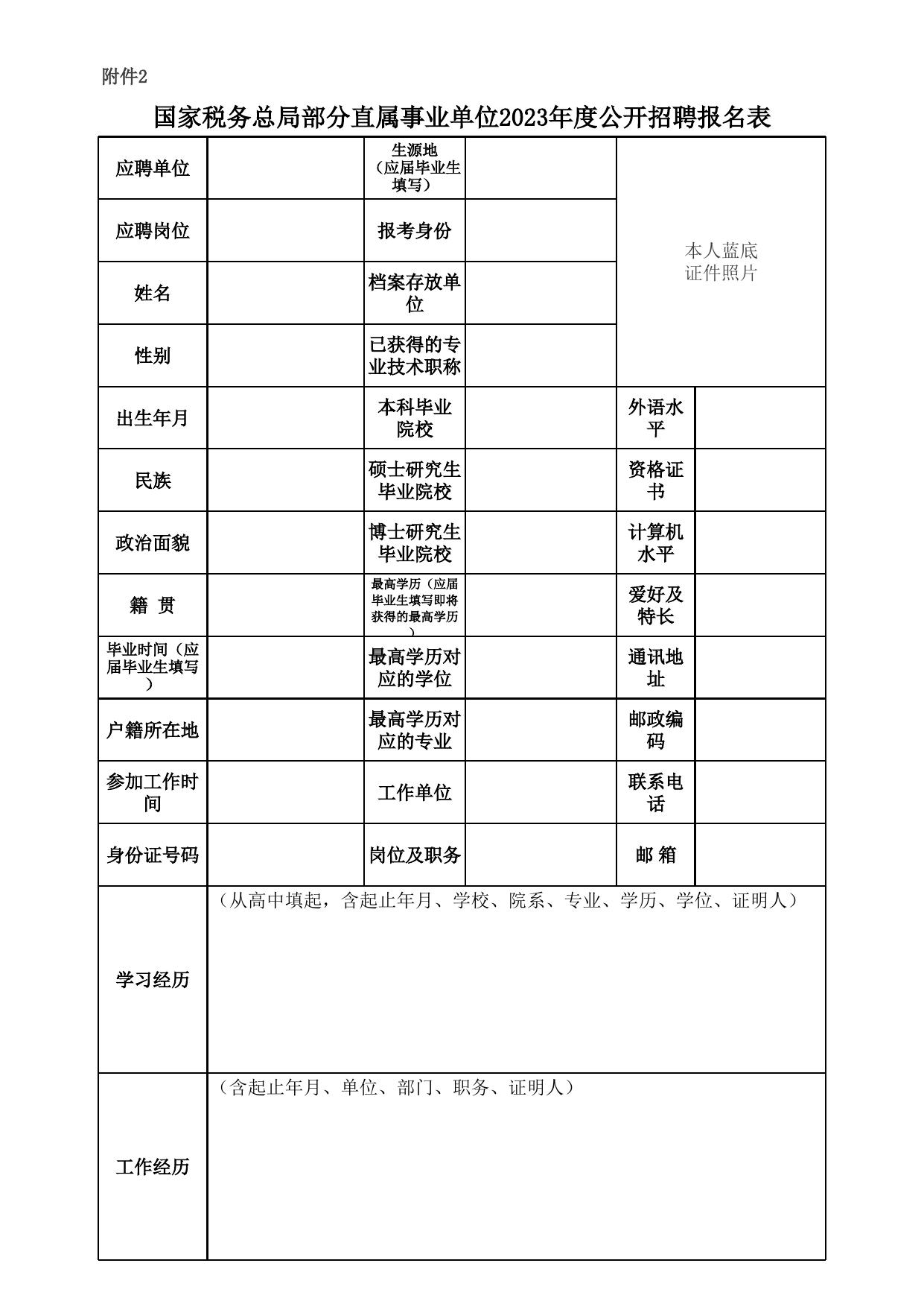 附件2:国家税务总局直属事业单位2022年度公开招聘报名表.xls
