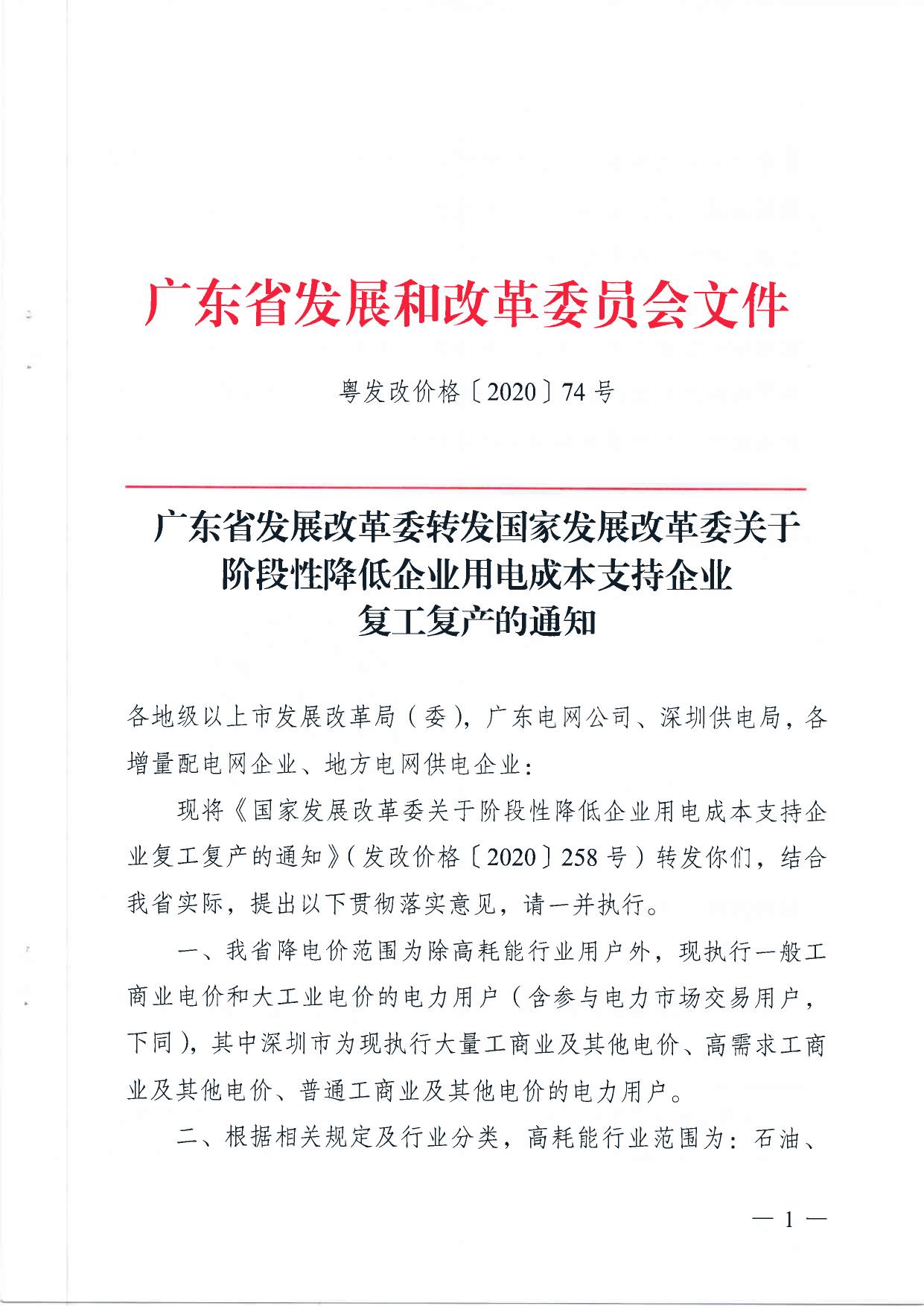 广东省发展改革委转发国家发展改革委关于阶段性降低企业用电成本支持企业复工复产的通知.PDF