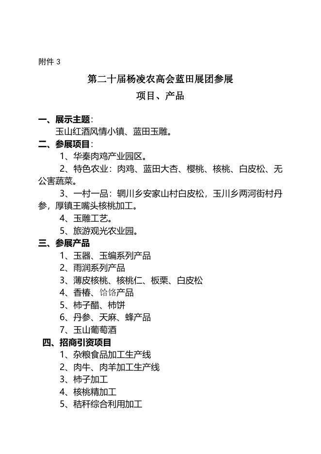 第二十届杨凌农高会蓝田展团参展项目、产品.doc