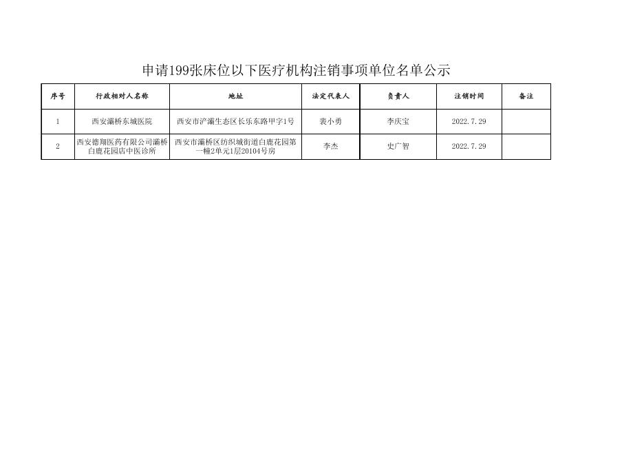 199张床位以下医疗机构执业注销事项单位名单公示8.2.xls