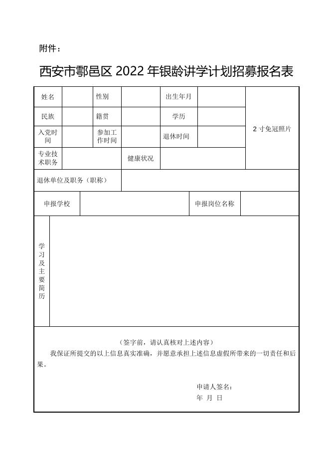 西安市鄠邑区2022年银龄讲学计划招募报名表.doc