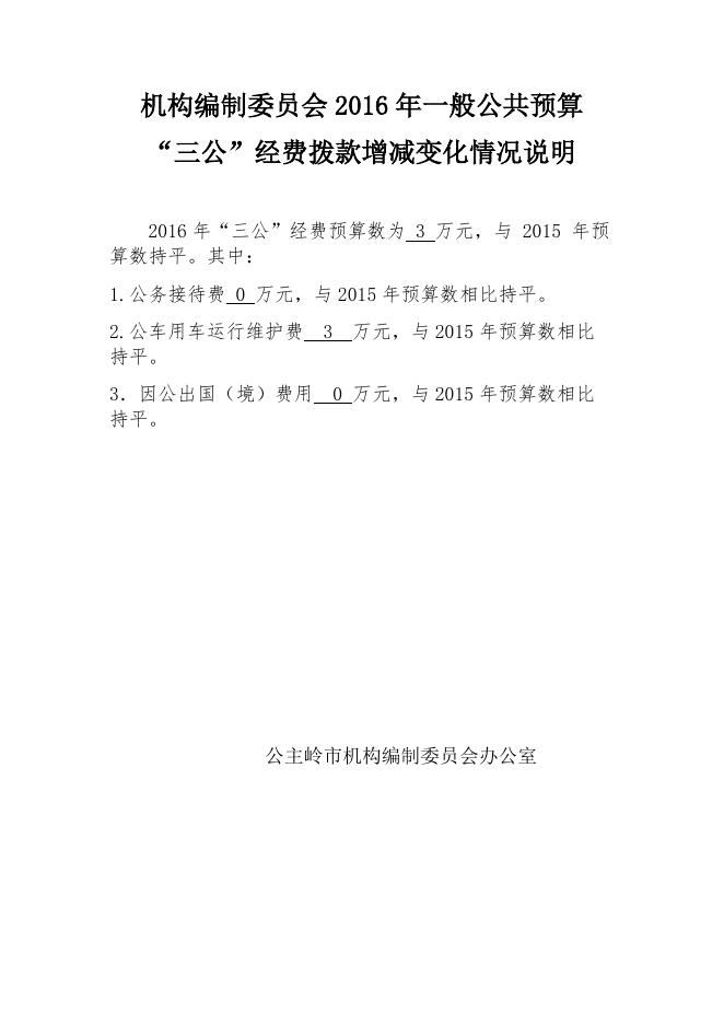 公主岭市机构编制委员会2016年预算一般公共预算“三公”经费拨款增减变化情况说明.docx
