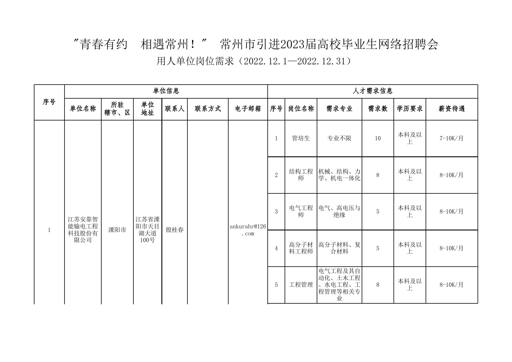 常州市引进2023届高校毕业生网络招聘会用人单位岗位需求汇总表.xlsx