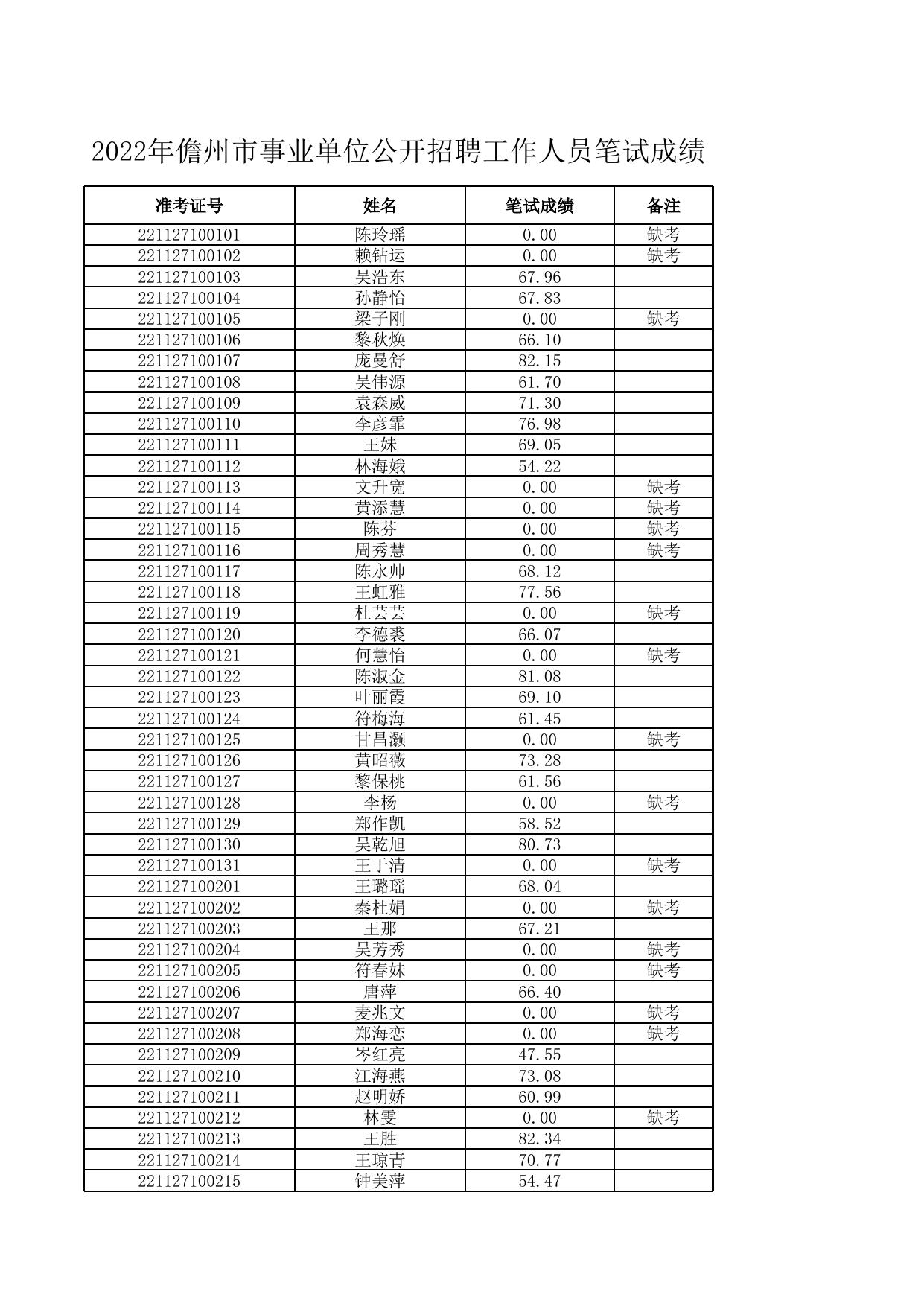 2022年儋州市事业单位公开招聘工作人员笔试成绩.xls