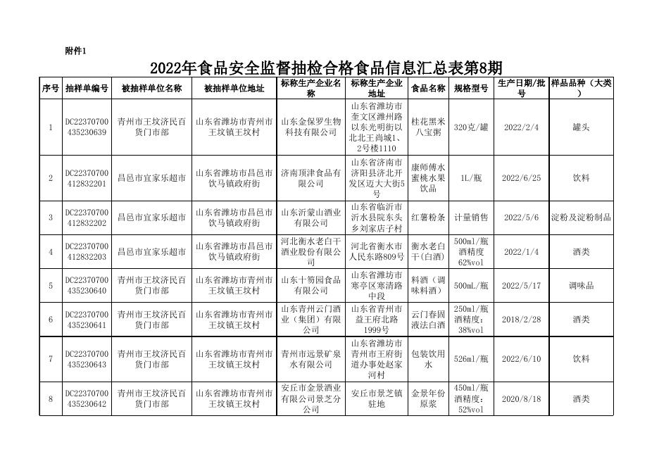 1.2022年食品安全监督抽检合格食品信息汇总表第8期.xls