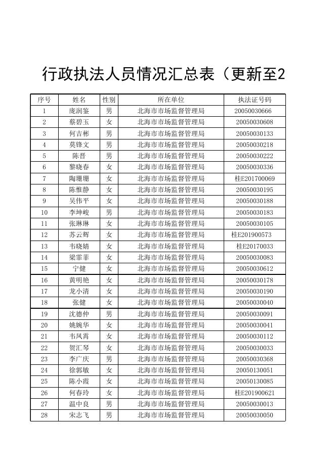 行政执法人员情况汇总表(北海市市场监督管理局).xlsx