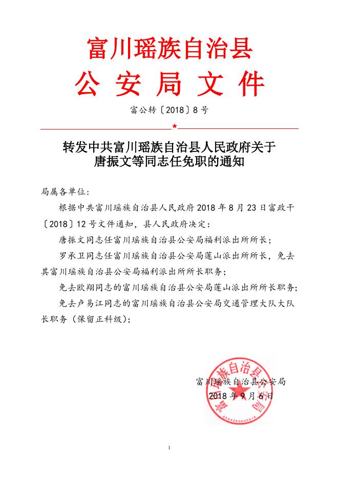 转发中共富川瑶族自治县人民政府关于唐振文等同志任免职的通知 - 人事信息 - 广西贺州市富川瑶族自治县人民政府门户网站 - www.gxfc.gov.cn.doc