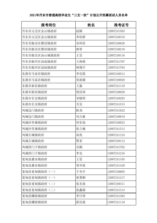 1627625868859附件:2021年丹东市普通高校毕业生“三支一扶”计划公开招募考试面试人员名单.xls