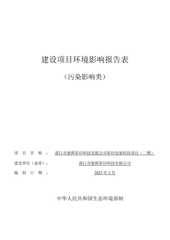 湛江市骏辉彩印科技有限公司彩印包装科技项目(二期)环境影响报告表.pdf