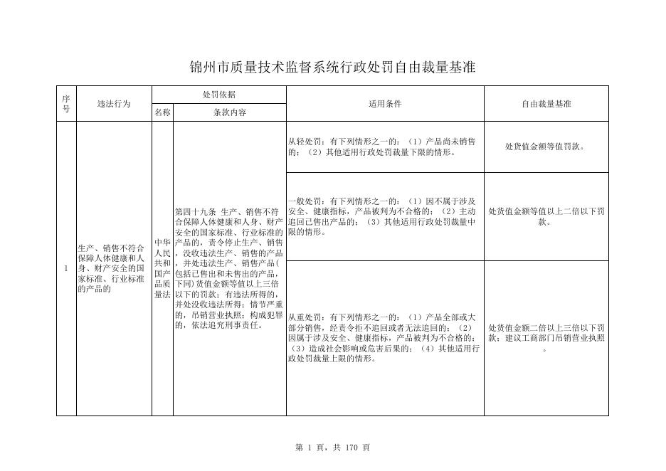 锦州市质量技术监督系统行政处罚自由裁量基准.xls