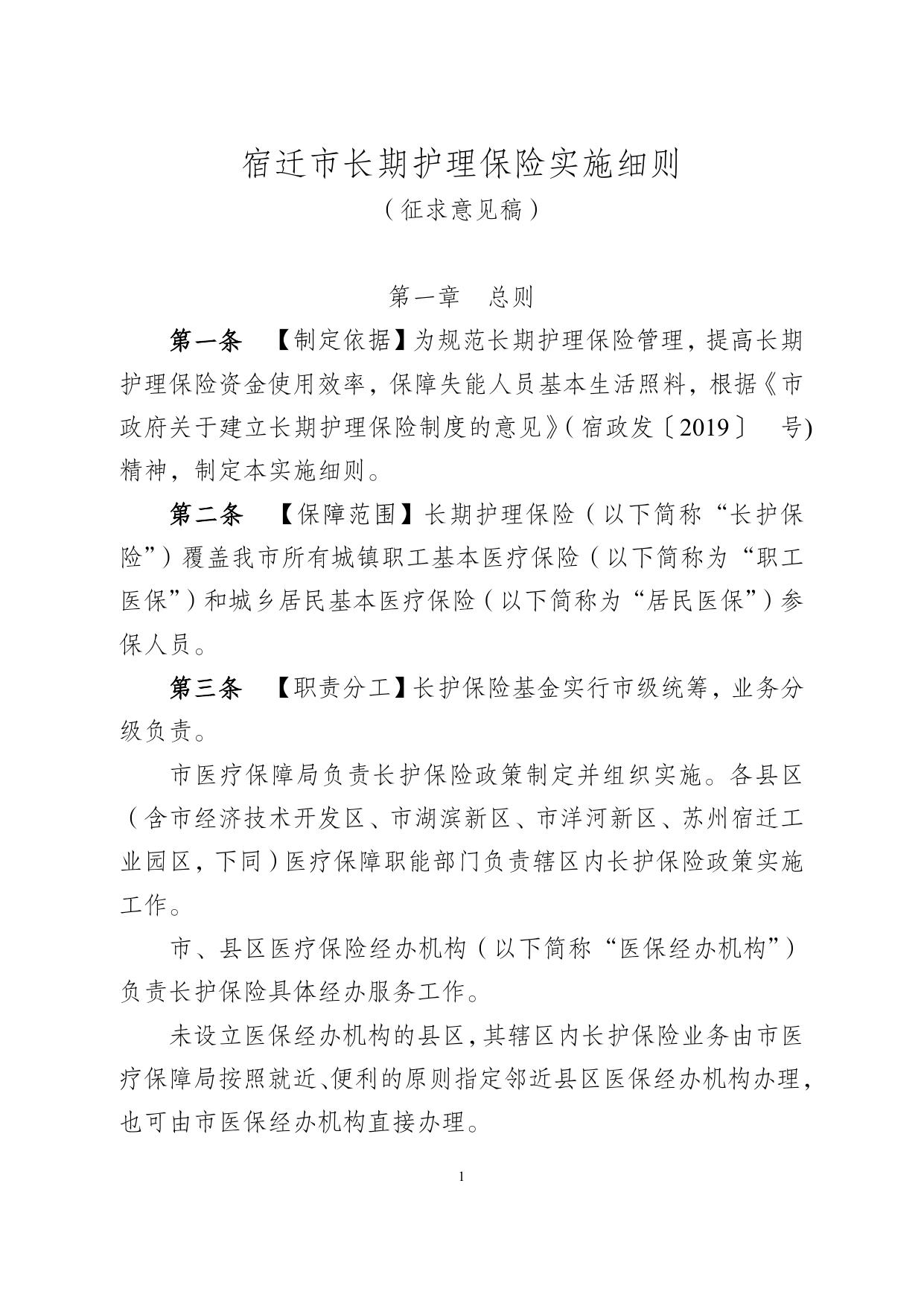 宿迁市长期护理保险实施细则(征求意见稿).doc