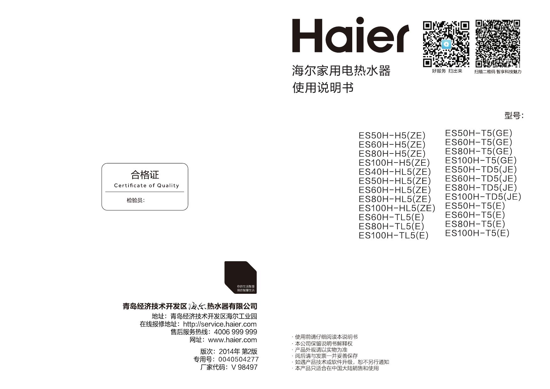 海尔Haier 电热水器 ES50H-T5(E) 说明书.pdf