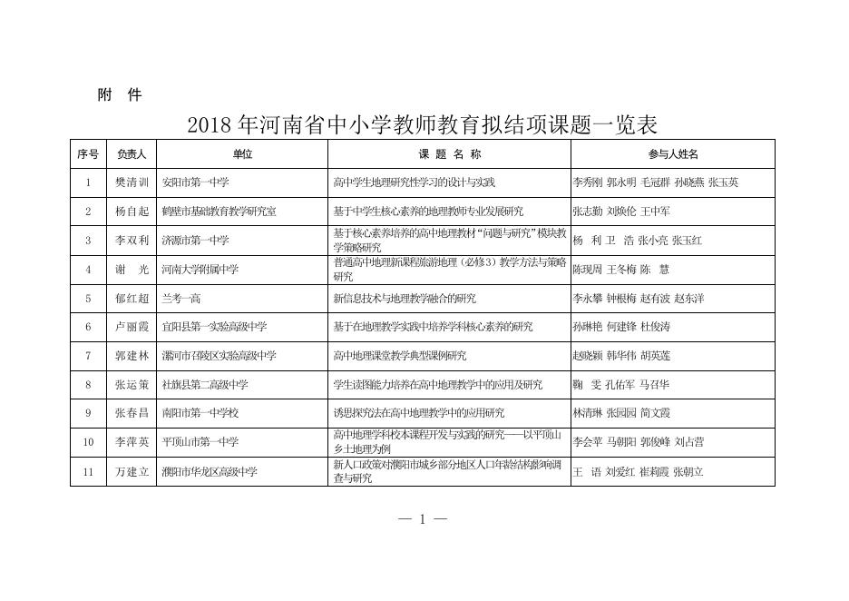 2018年河南省中小学教师教育拟结项课题一览表.doc