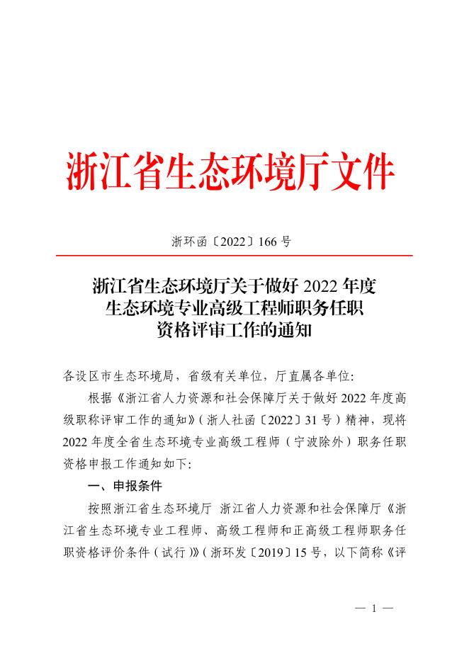 附件6.浙江省生态环境厅关于做好2022年度生态环境专业高级工程师职务任职资格评审工作的通知.pdf