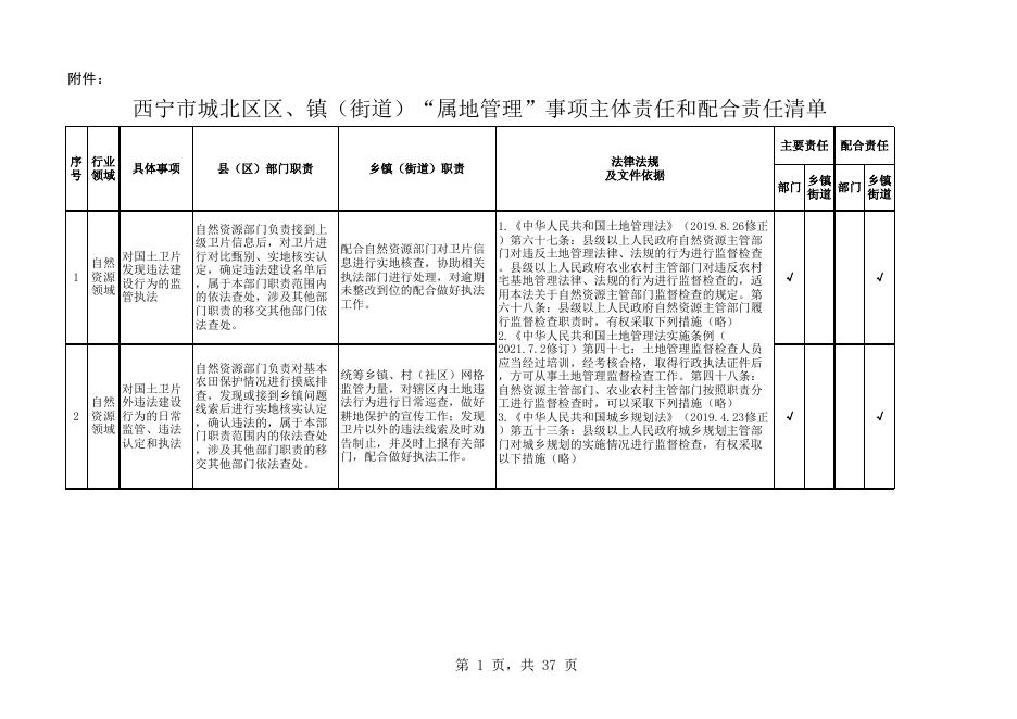 西宁市城北区区、镇(街道)"属地管理"事项主体责任和配合责任清单.xls