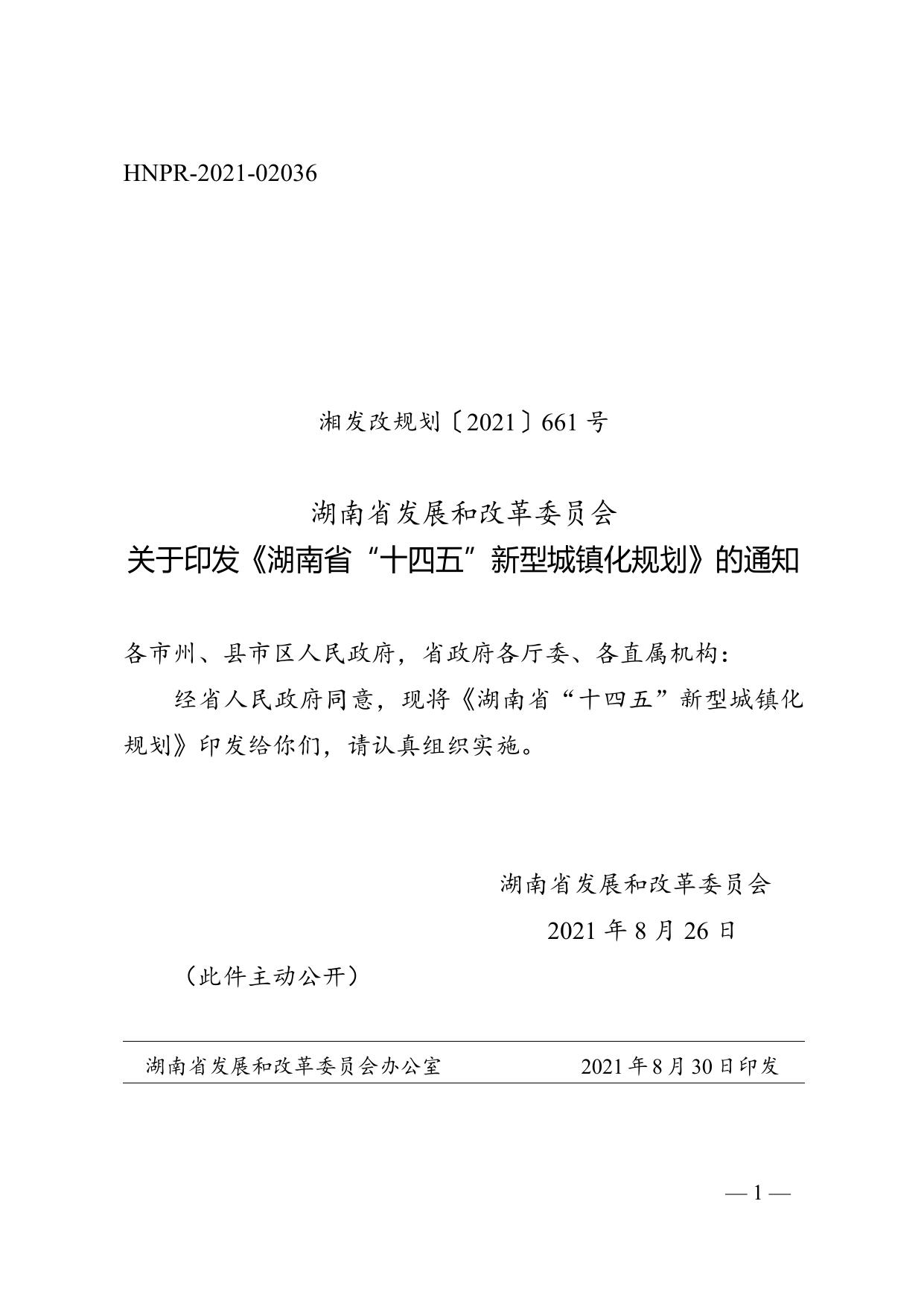 湖南省发展和改革委员会关于印发《湖南省“十四五”新型城镇化规划》的通知.doc