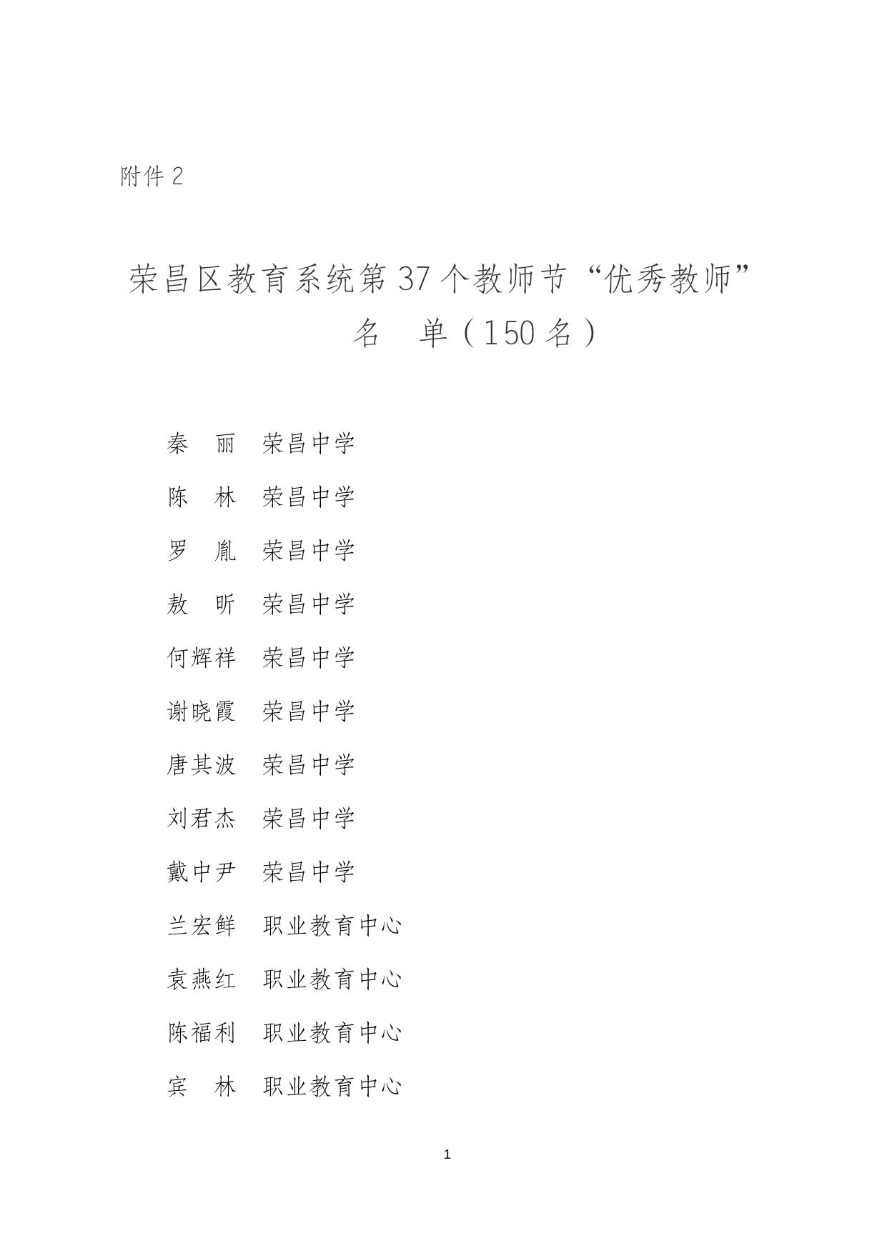 荣教工委发〔2021〕58号附件2:荣昌区教育系统第37个教师节“优秀教师”名单.docx