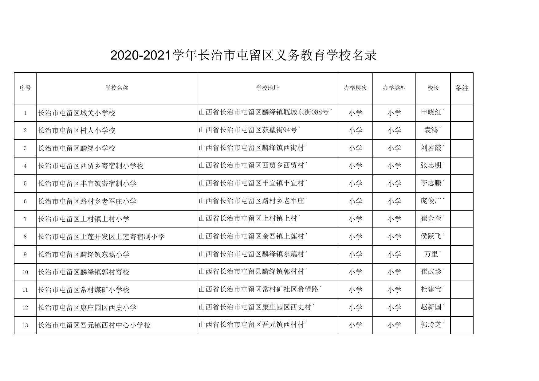 2020-2021学年长治市屯留区义务教育学校名录.xls