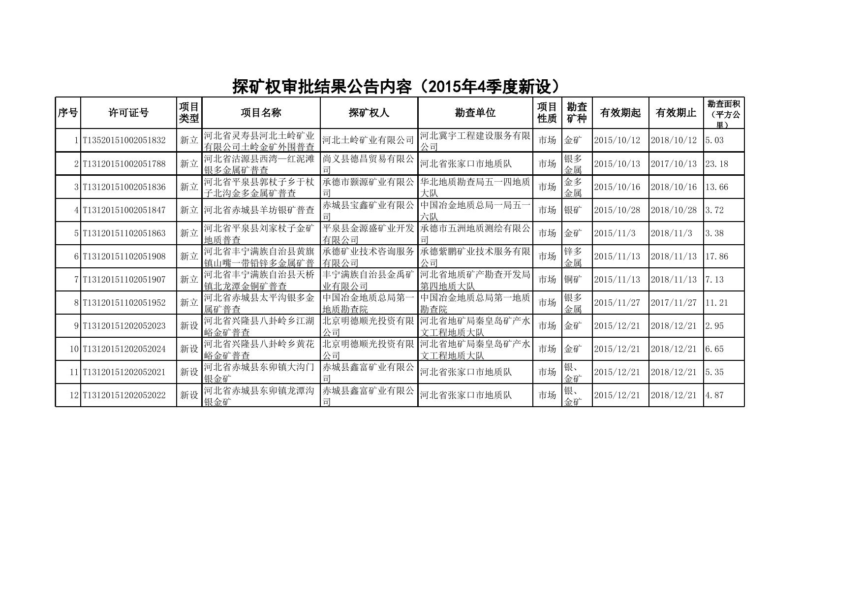 2015年4季度探矿权审批内容公告.xls