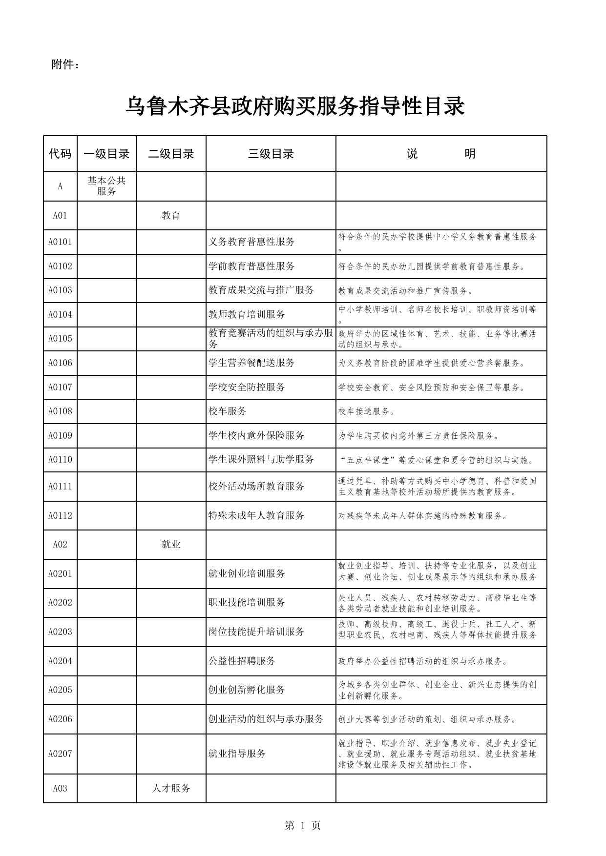 乌鲁木齐县政府购买服务指导性目录(2021年).xlsx