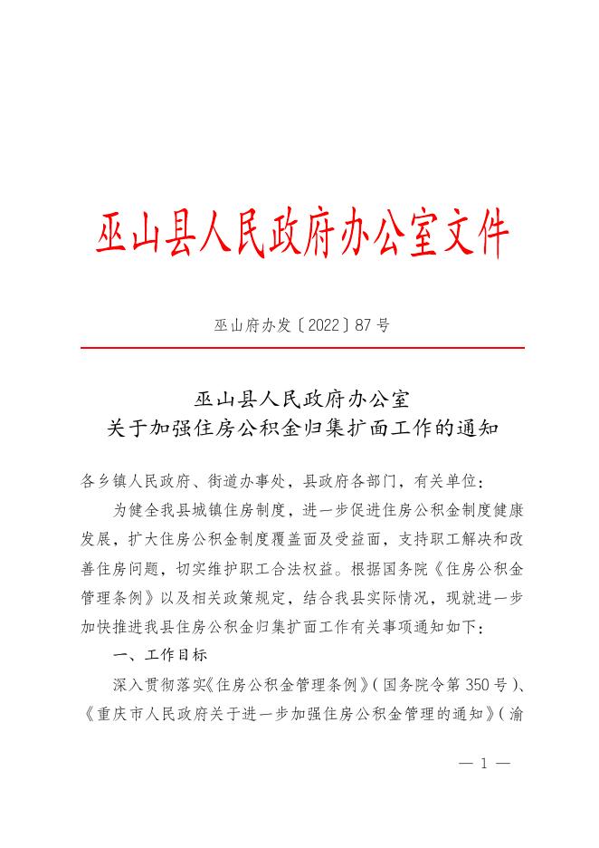 巫山县人民政府办公室关于加强住房公积金归集扩面工作的通知.doc