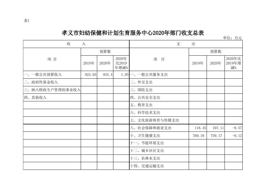 孝义市妇幼保健和计划生育服务中心2020年部门预算公开表.xlsx