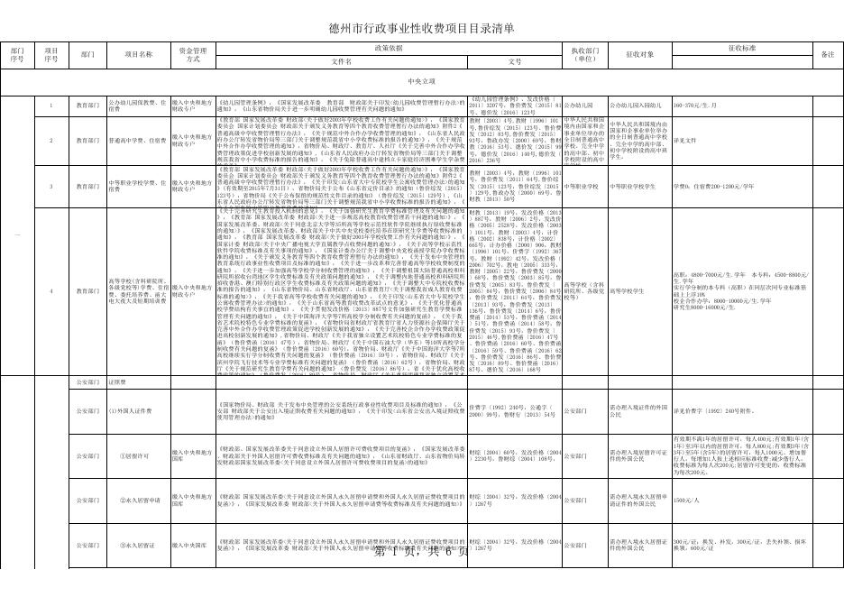 德州市行政事业性收费项目目录清单20170626.xls
