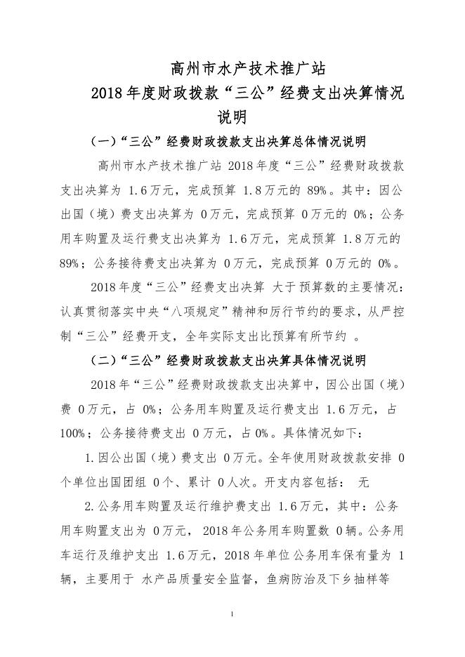 2018年部门决算三公经费公开(高州市水产技术推广站).pdf