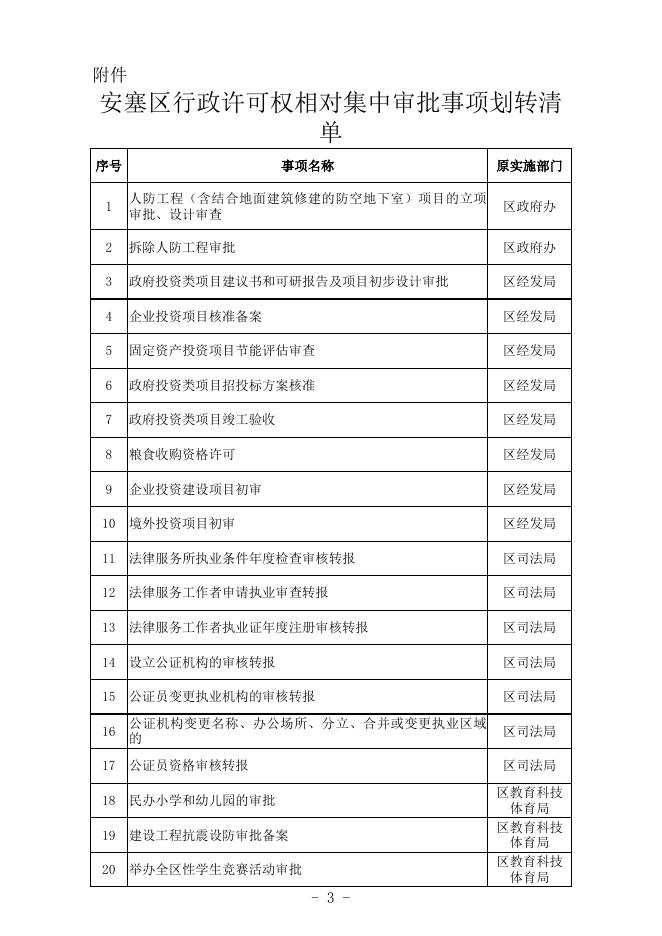 延安市安塞区人民政府办公室关于划转行政许可权相对集中审批事项的通知.xlsx