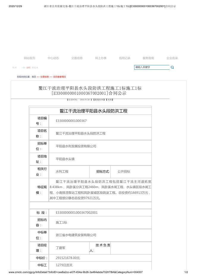 浙江省公共资源交易-鳌江干流治理平阳县水头段防洪工程施工1标施工1标[E3300000001000367002001]合同备案.pdf