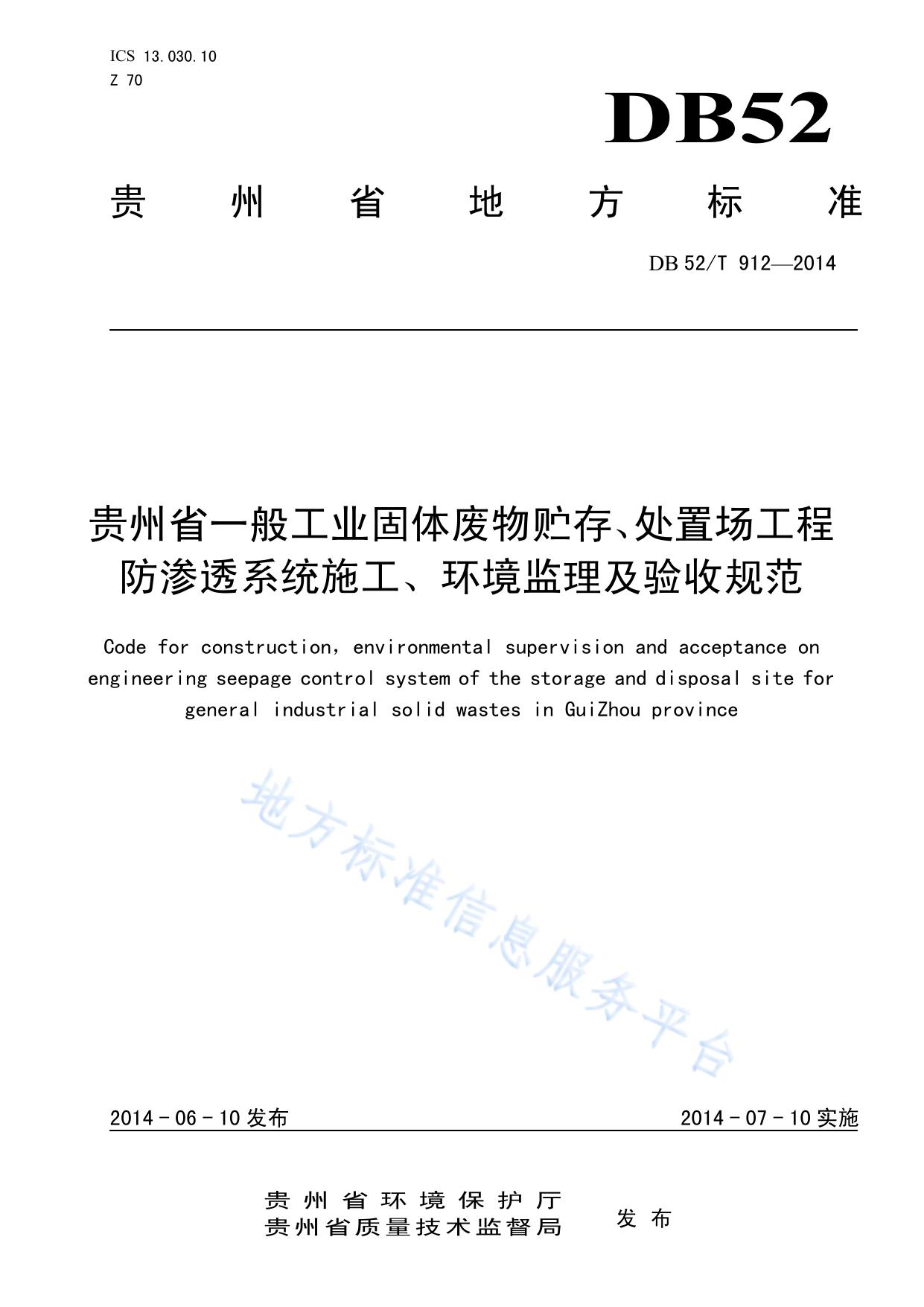 贵州省一般工业固体废物贮存、处置场工程防渗系统施工、环境监理及验收规范