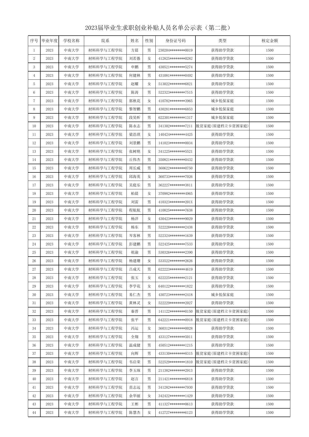 2023届毕业生求职创业补贴人员名单公示表(第二批).xls