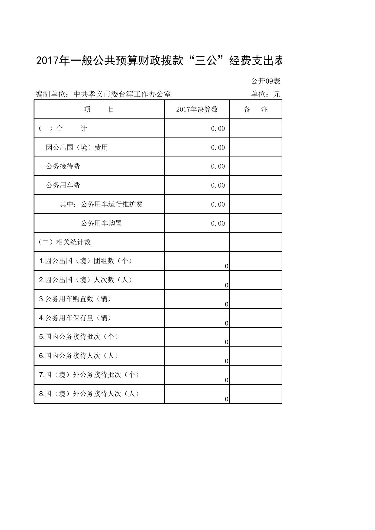 2、中共孝义市委台湾工作办公室2017一般公共预算财政拨款“三公”经费支出表.xlsx