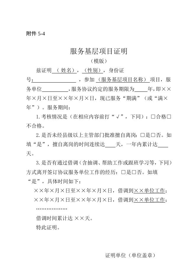 附件3:服务基层项目证明(模板).doc