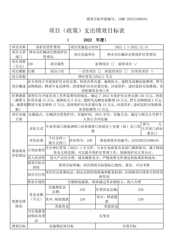 2.陕西红碱淖国家级自然保护区管理局2022年项目(政策)支出绩效目标表.docx
