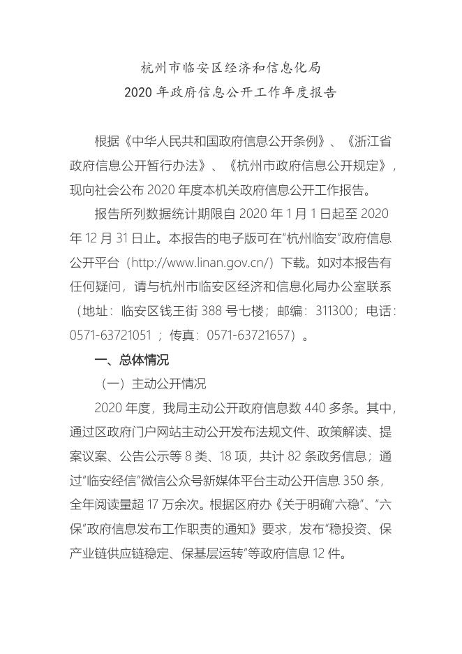 区经信局政府信息公开工作2020年度报告.docx