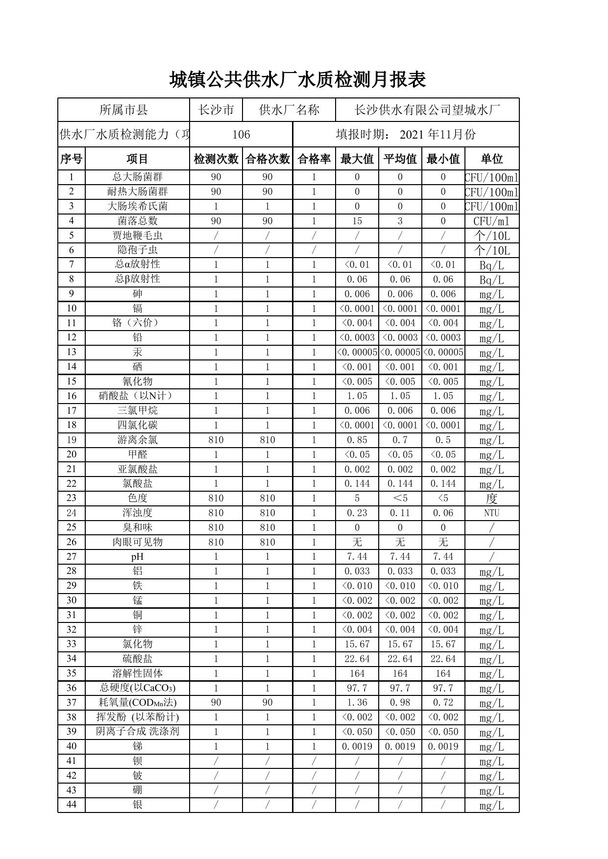 2021年11月望城水厂城镇公共供水厂月度水质报表.xls