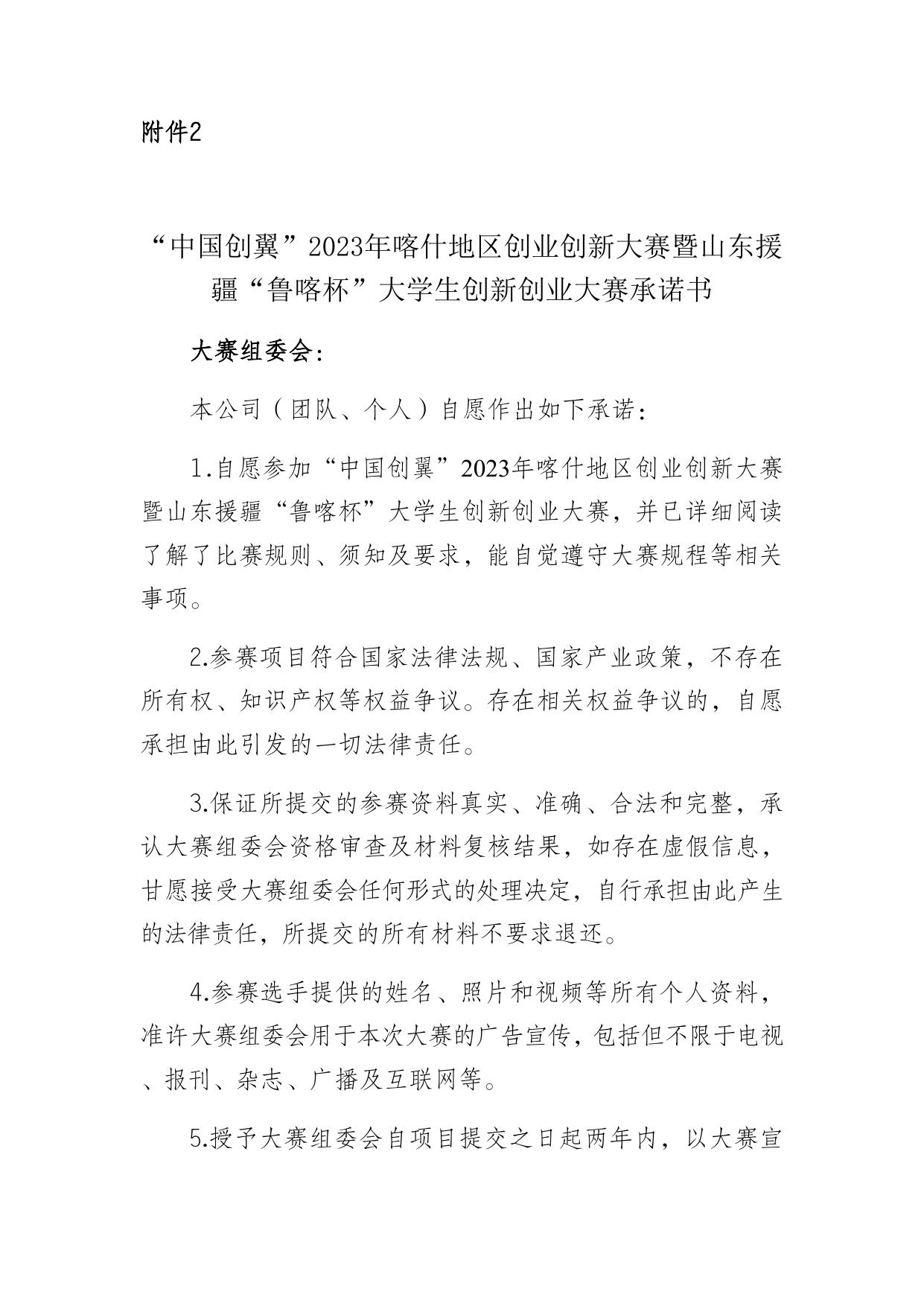 2.“中国创翼”2023年喀什地区创业创新大赛暨山东援疆“鲁喀杯”大学生创新创业大赛承诺书.docx