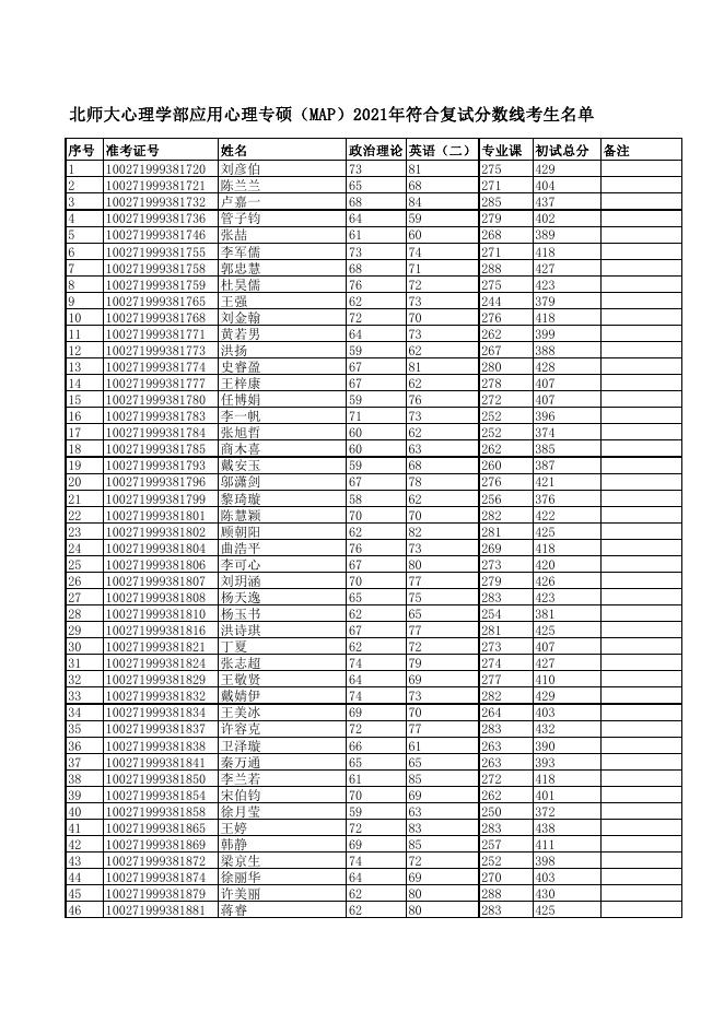 附件3-北师大心理学部应用心理专硕(MAP)2021年符合复试分数线考生名单.pdf