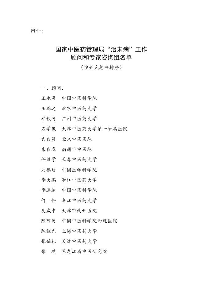 国家中医药管理局“治未病”工作顾问和专家咨询组名单.doc