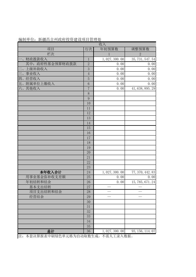 新疆昌吉州政府投资建设项目管理处决算报表.xls