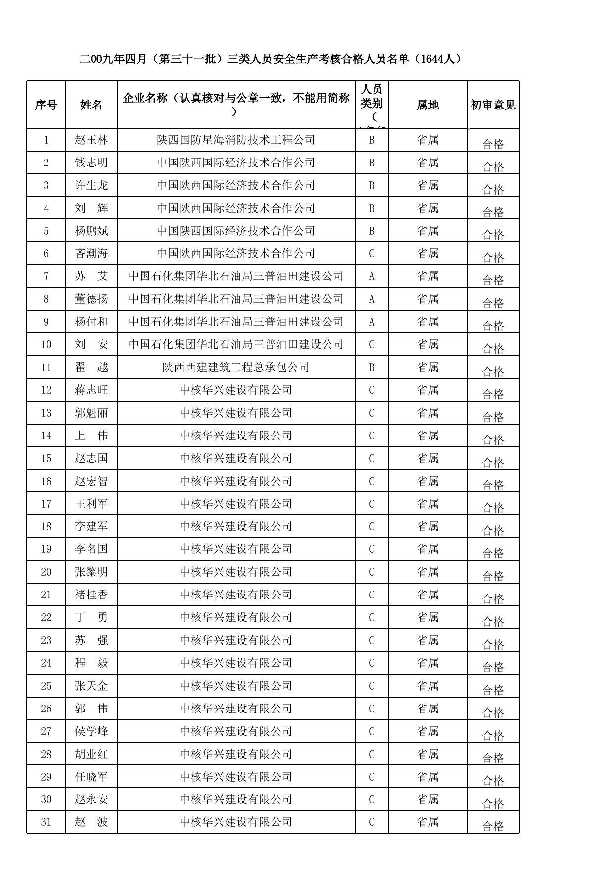 附件三:建筑施工企业“三类人员”安全生产考核合格人员名单(1644人).xls