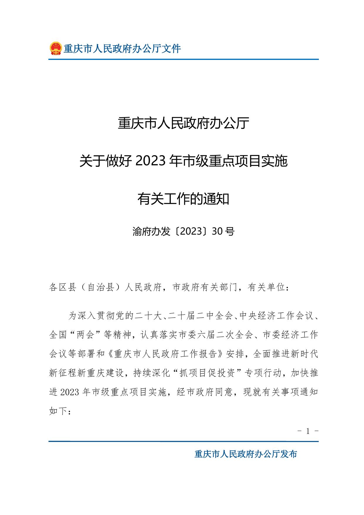 重庆市人民政府办公厅关于做好2023年市级重点项目实施有关工作的通知.doc