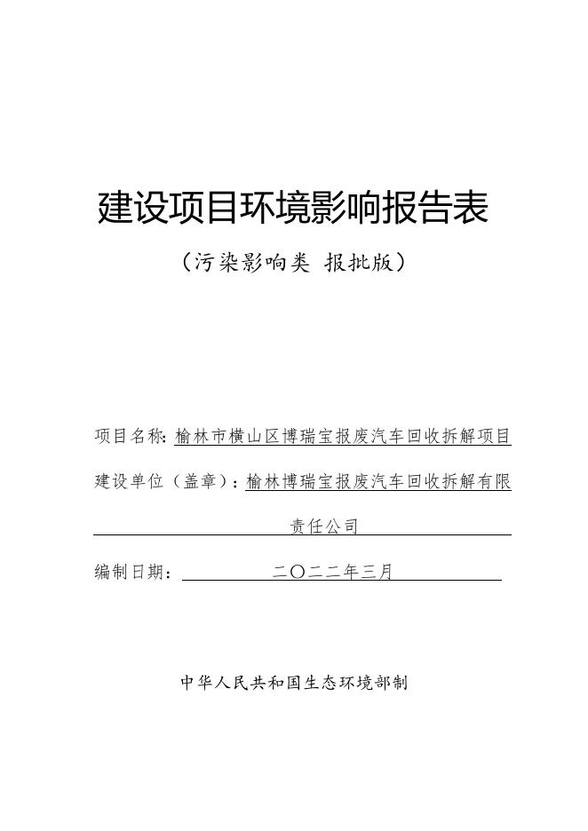 榆林市横山区博瑞宝报废汽车回收拆解项目环境影响报告表.docx