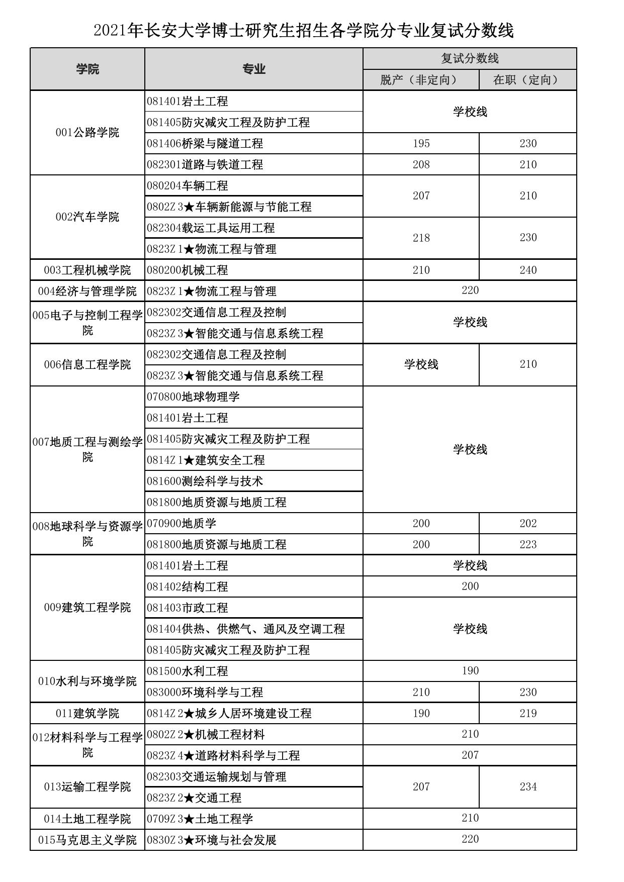 附件-2021年长安大学博士研究生招生各学院分专业复试分数线.pdf