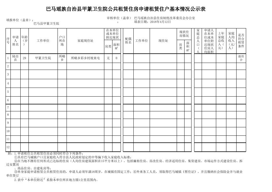 甲篆卫生院公共租赁住房申请租住户基本情况公示表.xls