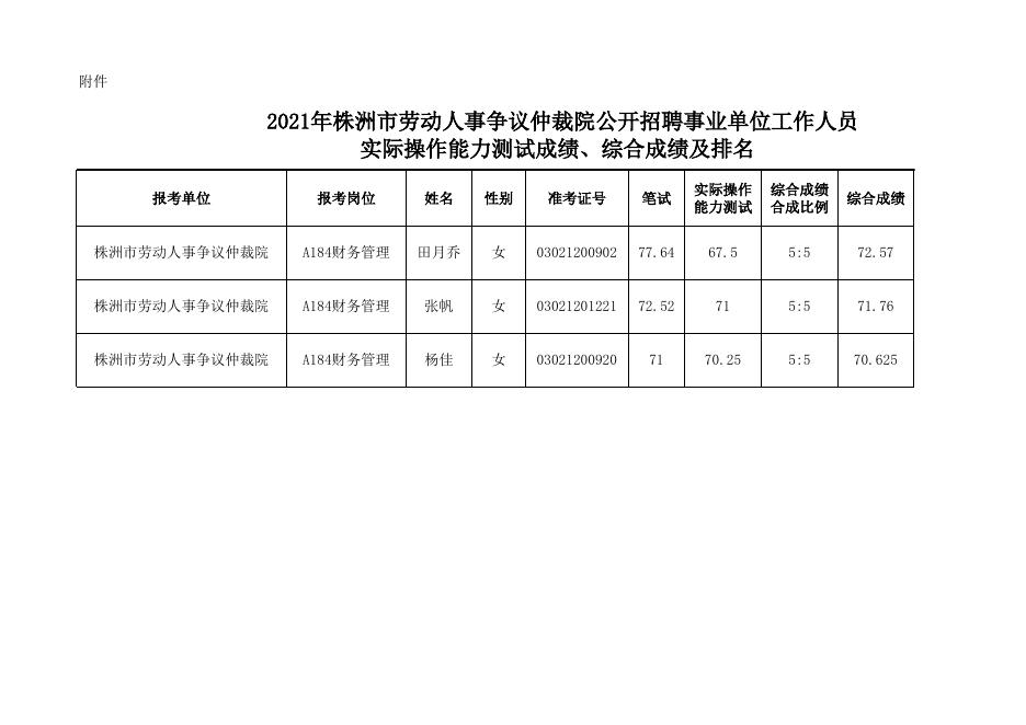 2021年株洲市劳动人事争议仲裁院公开招聘事业单位工作人员实际操作能力测试成绩、综合成绩及排名.xlsx